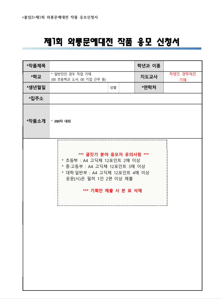 2525030342제1회와룡문예대전응모신청서.hwp 2525030342_D제1회와룡문예대전응모신청서.pdf |